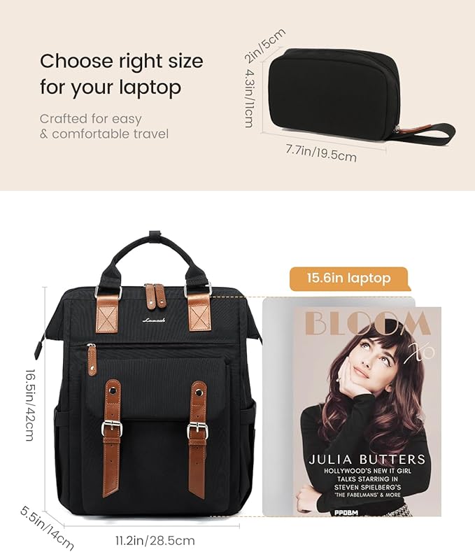 - Plenty of Pockets & Storage : The laptop backpack for women has plenty of pockets for different types of items. The laptop bag can hold so much stuff and still keep it organized. The added small bag is a nice size to put a few small things or even a laptop charger. The added pouch bag can be used as electronics organizer, college essentials pouch bag, travel organizer or cosmetic organizer.