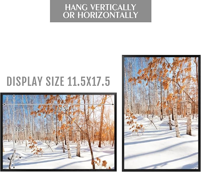 - Picture Frame: Stylish and Practical 18x12 Inch Photo Frame with Aluminum Moulding Frame and Acrylic Display Panel. (Display Size: 11.5x17.5; Overall Size: 12.5x18.5; Fits Picture Size: 12x18)