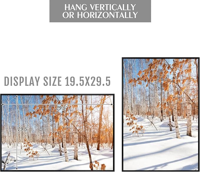 - Picture Frame: Stylish and Practical 30x20 Inch Photo Frame with Aluminum Moulding Frame and Acrylic Display Panel. (Display Size: 19.5x29.5; Overall Size: 20.5x30.5; Fits Picture Size: 20x30)