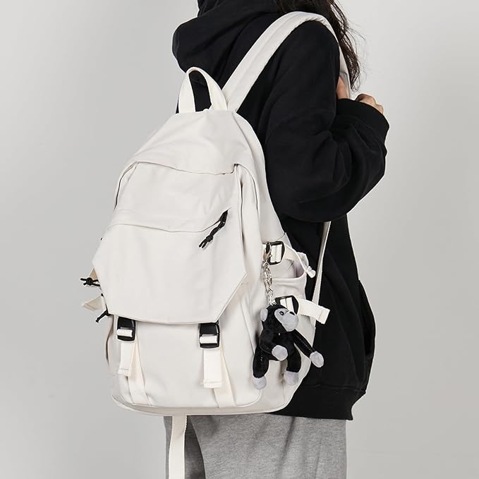Lightweight School Bag Casual Daypack College Laptop Backpack for Men Women Water Resistant Travel Rucksack for Sports High School Middle Bookbag for girls(White)