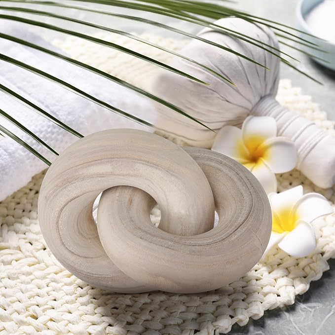Yalikop 2 Link Wood Chain Link Decor Coffee Table Wooden Knot Decor Hand Carved Modern Farmhouse Ornament Boho Rustic Natural Chain Items for Home Living Room Bedroom Shelf Decorations(Wood)