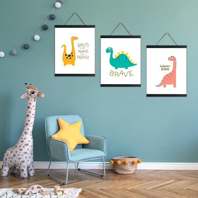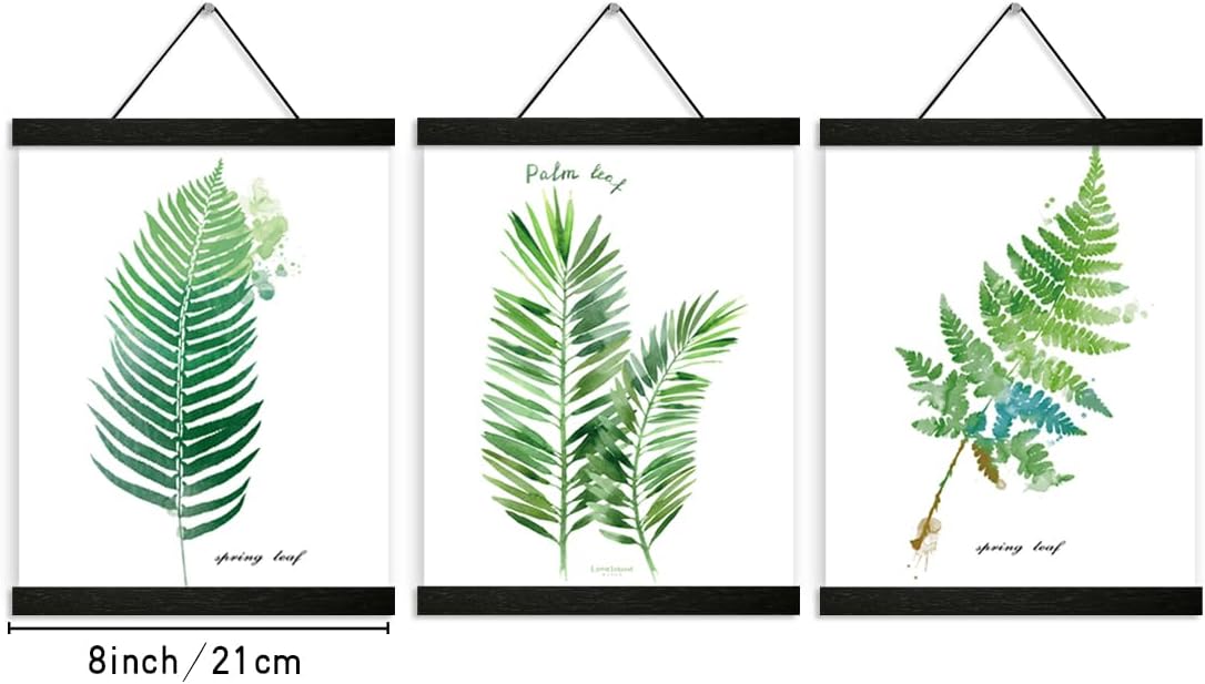 3 Pack Magnetic Poster Hanger black 8 Inch, 8x10 8x12 8x16 Poster Frame Wood Wooden Magnet Print Posters Dowel Scroll Hanger Hangers Hanging Kit for Walls Map Canvas Artwork