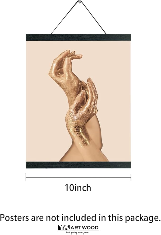 3 Pack Magnetic Poster Hanger 10 Inch Black, 10x12 10x16 10x14 Poster Frame Wood Wooden Magnet Print Posters Dowel Scroll Hanger Hangers Hanging Kit for Walls Map Canvas Artwork