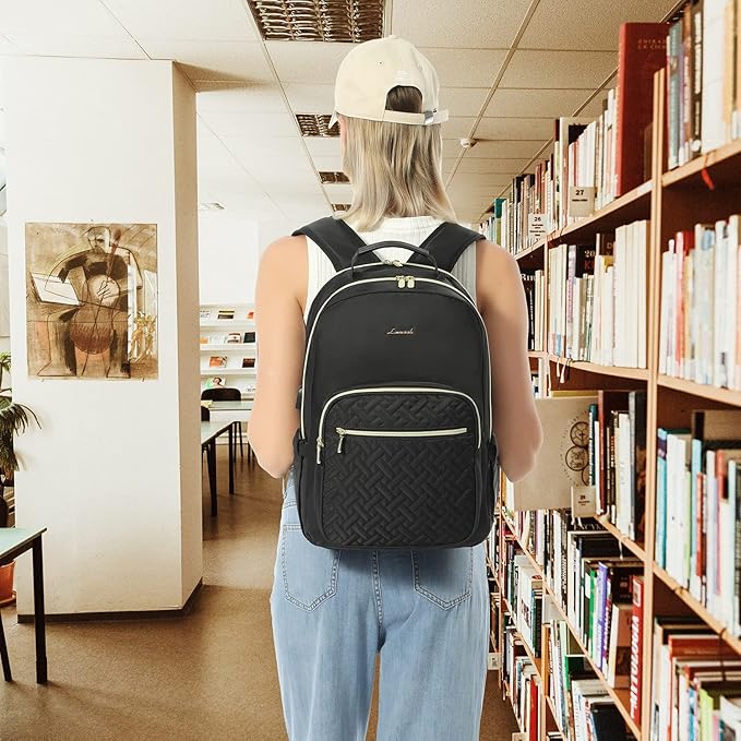 LOVEVOOK Laptop Backpack for Women, Stylish Quilted Backpacks Purse for Business Work Travel, Computer Bags Bag, with USB Port fits 15.6-inch Laptop, Black
