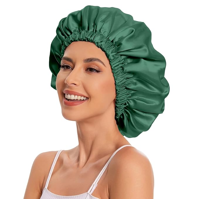Satin Bonnet Silk Bonnet Hair Bonnet for Sleeping-Slouchy Beanie Hat Satin Sleep Cap for Women's Natural & Curly Hair(Blackish Green)