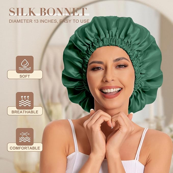 - 【Appropriate Size】The diameter of this silk bonnet is 13 inches and features a soft elastic band, making it suitable for almost all head sizes. Satin sleep beanie are suitable for curly hair, natural hair, long hair, braids, weaves, rollers, hair clamps, and up-dos.