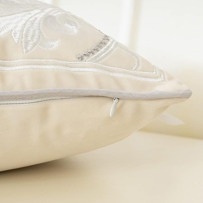 Aeckself European Luxury Velvet Lumbar Throw Pillow Cover 12 x 20 Inch, Embroidery Floral Pillow Cover Home Decor Oblong Pillowcase for Couch Bedroom Living Room, Off White