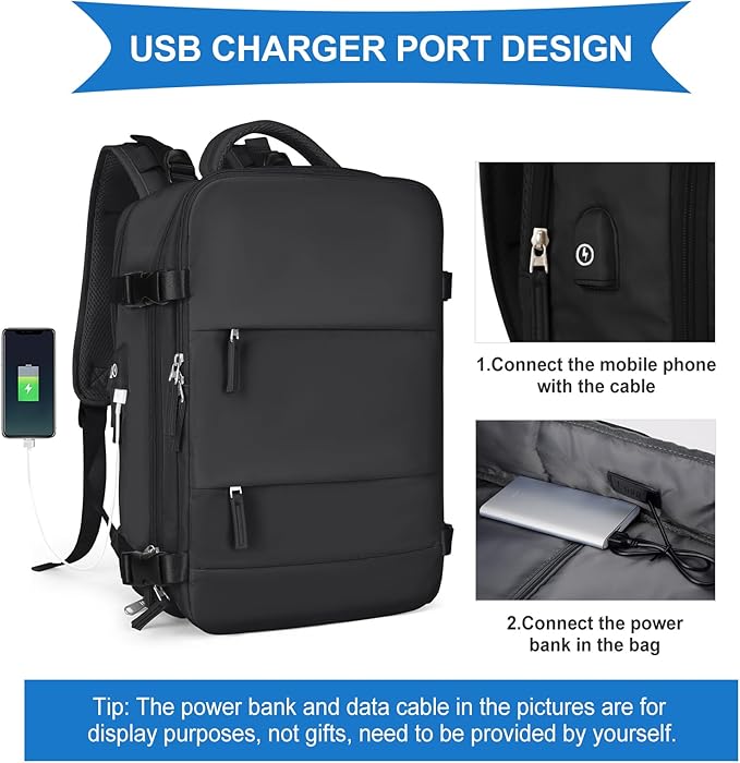 coowoz Large Travel Backpack For Women Men,Carry On Backpack Flight Approved,Hiking Backpack Waterproof Outdoor Sports Rucksack Casual Daypack Fit 15.6 Inch Laptop Shoes Compartment (Black)