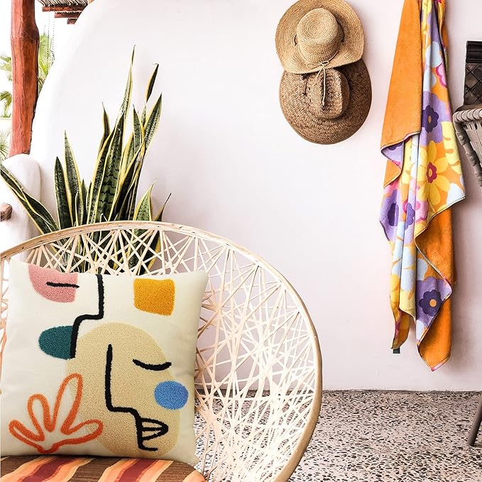 Merrycolor Boho Abstract Pillow Covers Colorful Woman Face Line Cute Pillow Cases Mid Century Aesthetic Modern Boho Pillows Decorative Throw Pillows for Bed Couch Living Room,1PC