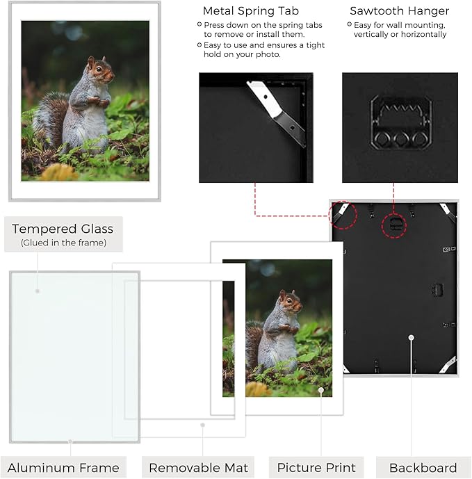 - Easy to Use: Spring Retention Clips& Corner Spring Clips on the backboard are easy for loading photos and hold picture tightly. Sawtooth Hangers are for wall display (Vertically or Horizontally)