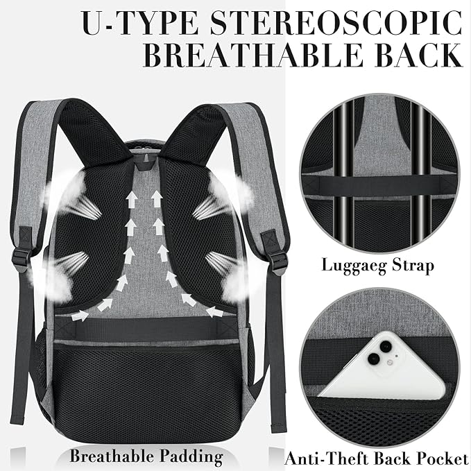 - ★USB PORT &ANTI THEFT DESIGN:With built in USB charger outside and built in charging cable inside,this USB backpack offers you a more convenient way to charge your phone while walking. A luggage strap allows backpack fit on luggage/suitcase, slide over the luggage upright handle tube for easier carrying. With a hidden anti theft pocket on the back protect your valuable items from thieves, please be assured that the use of