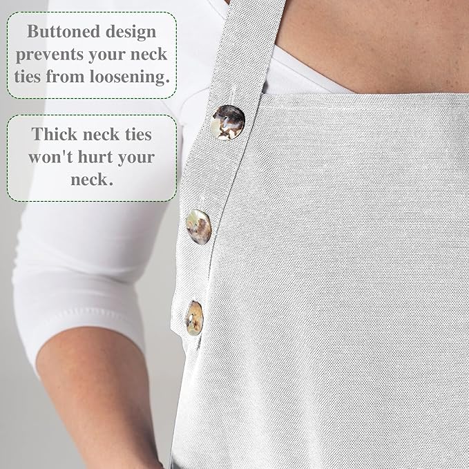 - ✅ PREMIUM MATERIAL : Aprons with pockets, which are a mixture of 66% cotton and 34% polyester, provide an excellent experience. The neck strap is buttoned and the waist ties are long.