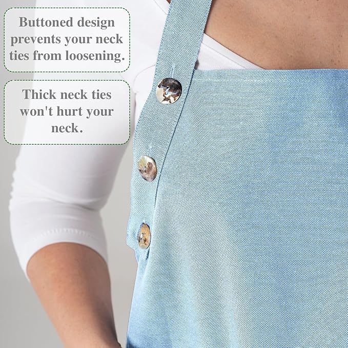 - ✅ PREMIUM MATERIAL : Aprons with pockets, which are a mixture of 66% cotton and 34% polyester, provide an excellent experience. The neck strap is buttoned and the waist ties are long.