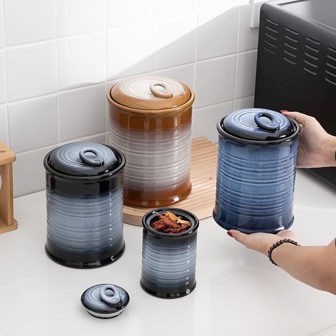 - [Fashion decorations] - Jars with airtight lids available in multiple colors,elegant pull-can designed blends in perfectly with your kitchen corner,the angled ring-pull angle makes it easier to open the airtight lid.