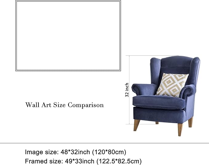 - Art image Size:(W) 32 in x (H) 48 in.Finished Framed Size: (W)32.4in x (H) 48.3in,1.4inch thick.