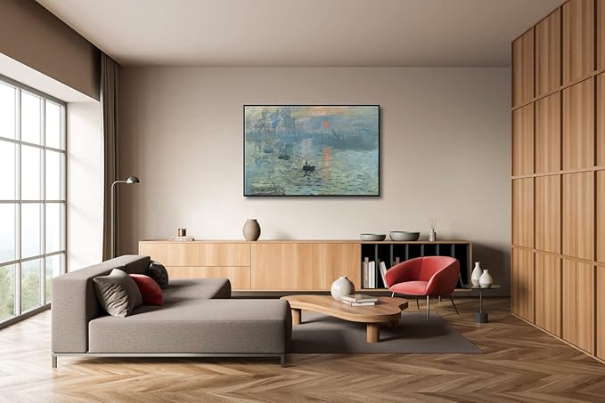 Wieco Art Extra Large Black Framed Art Impression Sunrise of Claude Monet Famous Paintings Reproduction Seascape Artwork Pictures on Canvas Wall Art for Home Decorations Black