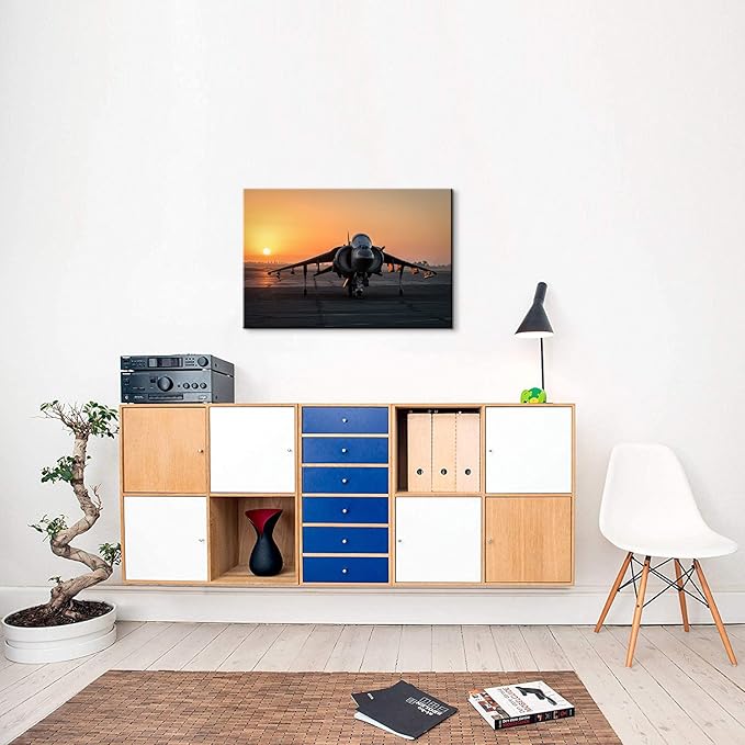 Airplane Decor AV-8B Harrier II Fighter Aviation Jets Poster Aviation Posters Airplane Pictures Wall Art Military Planes Poster for Boys Room Decor (12''Hx18''W)