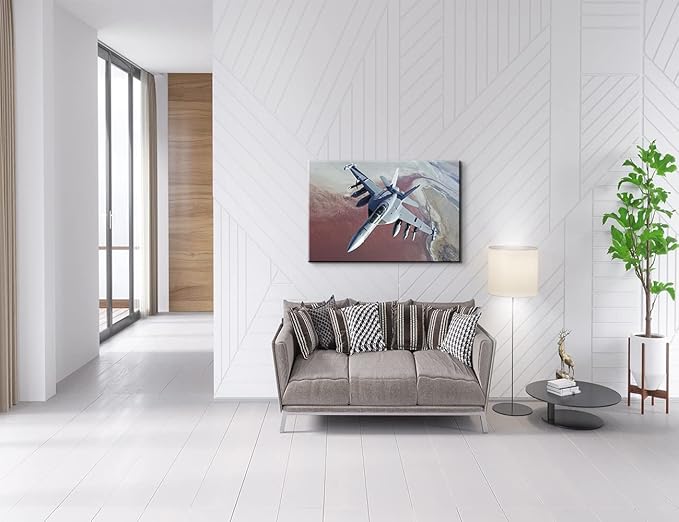- [High Quality Material]: ①The aviation art is made of sustainable and acceptable ink, UV resistant, waterproof, high definition printed canvas and sturdy frame. Not easily fading. It can be gently wiped with a damp cloth. ②Each military wall decor has been already stretched on stable wooden frame and Equipped with a durable solid metal hook, easy to hang. Using the premium workmanship to ensure its quality.