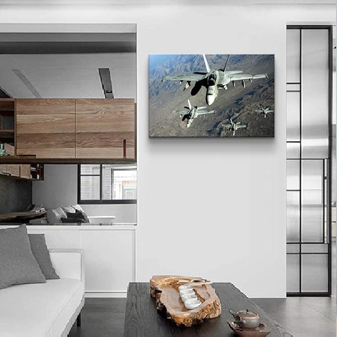 - [High Quality Material]: ①The aviation wall decor is made of sustainable and acceptable ink, UV resistant, waterproof, high definition printed canvas and sturdy frame. Not easily fading. It can be gently wiped with a damp cloth. ②Each military posters has been already stretched on stable wooden frame and Equipped with a durable solid metal hook, easy to hang. Using the premium workmanship to ensure its quality.
