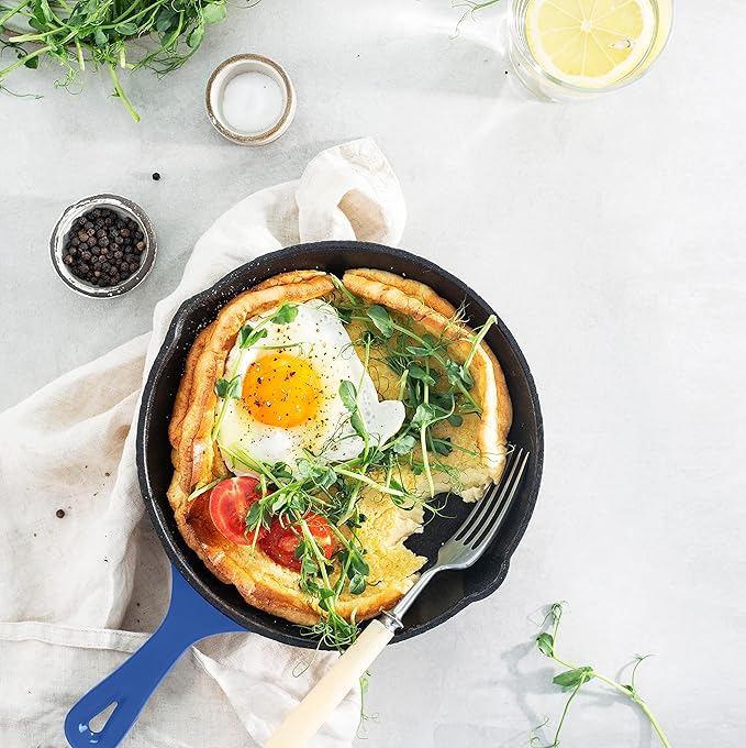 Utopia Kitchen Skillet 6.5 Inch, Cast Iron Chefs Pan, Pre Seasoned Skillet, Safe Grill Cookware for Indoor & Outdoor Use, Blue