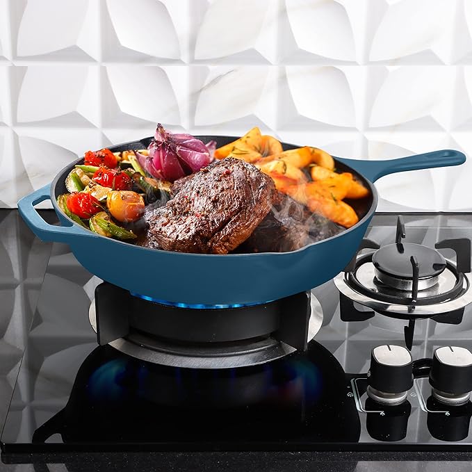 - Superior Heat Retention: The Cast Iron Skillet distributes heat evenly across the surface for perfect cooking results. Ideal for searing, sautéing, frying, baking, and more.