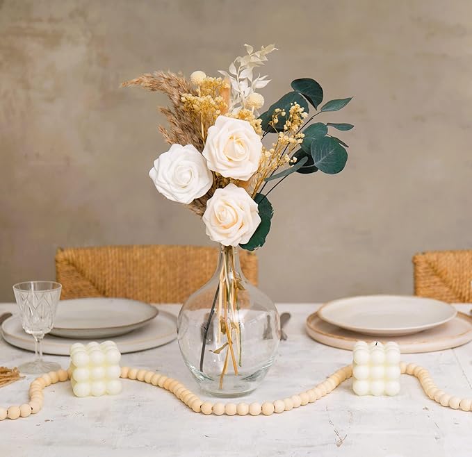 - CLEAR GLASS VASES FOR CENTERPIECES - The small boho vase for shelf decor provides an aesthetic feel you can decorate your farmhouse modern home with other decorative vases candle plants glass jug vase pubbles ceramic vases plastic vases. You can also pour water to the glass vase for stems as decorative glass vases for centerpieces.
