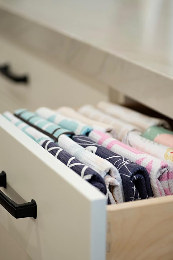 - COMPACT AND NEAT- The waffle weave design allows the towels to fold compactly, making them easy to store and keep your kitchen or bathroom organized.