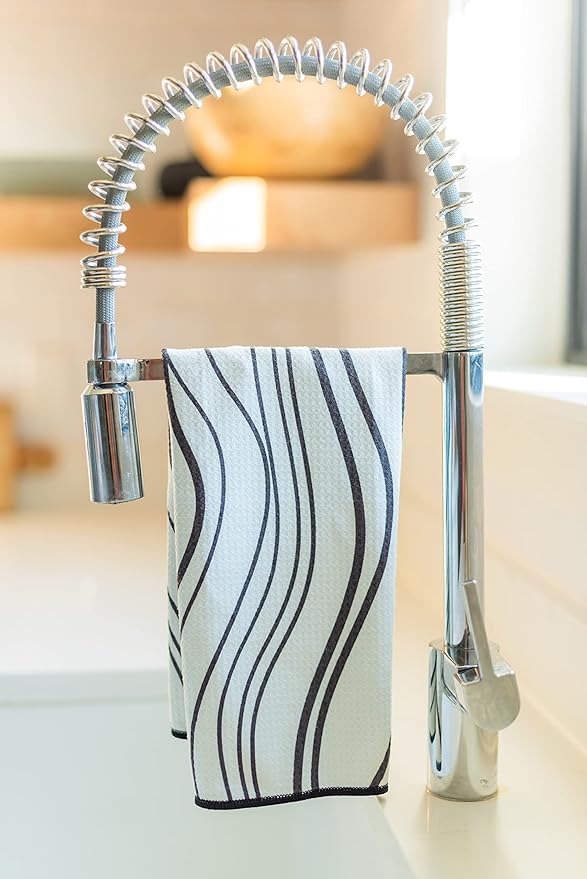 - Waffle weave microfiber which is Highly absorbent and strong enough to tackle any kitchen chore.