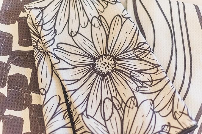 || 3 Pack|| Kitchen Towels || Dish Towels || Tea Towels || Highly Absorbent || Hanging Loop || Dish Cloths || Modern || Designer Prints (Beige/Black)