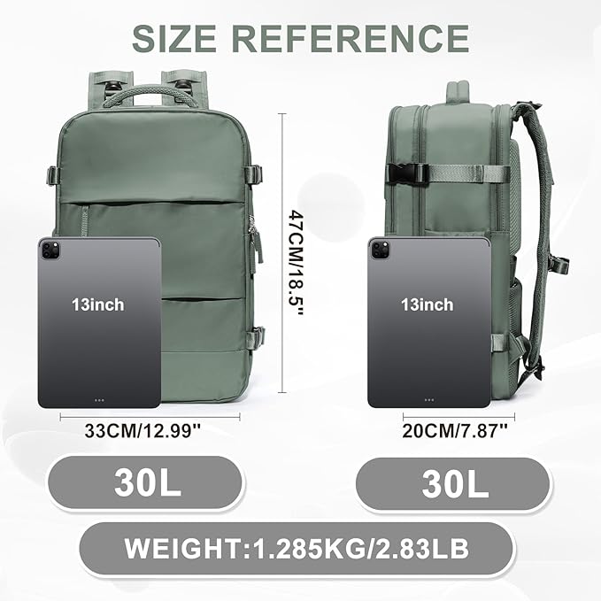 - 【Size】External size: (L*W*H)33*20*47cm/12.99"*7.87"*18.5" , Weight: 1.285KG/2.83 LB Size:30L;This size backpack can hold 3-4days of travel clothing and other supplies, suitable for short trips.