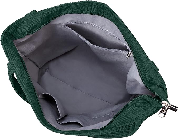 KALIDI Women Corduroy Tote Bag Zipper Casual Tote's Handbag Big Capacity Shoulder Bag with Pockets