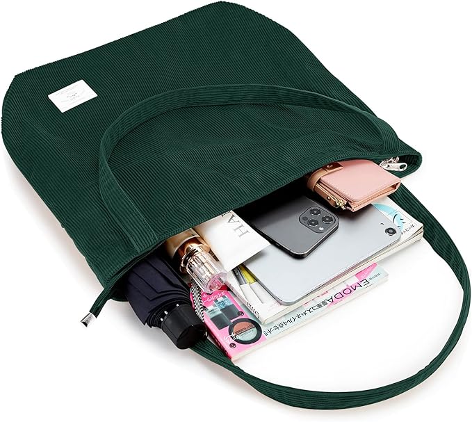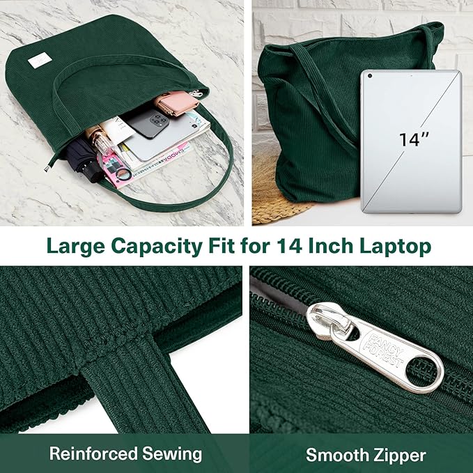 - LARGE CAPACITY: Corduroy Handbag is big enough for all of your daily necessities. You can easily carry your 15.4inch laptop, kindle, ipad, cellphone, binder, book, magazine, passport, keys, wallet/purse, pencil, charger, card, A4 papers, water bottle, perfume, makeup and sunglasses inside and so on.