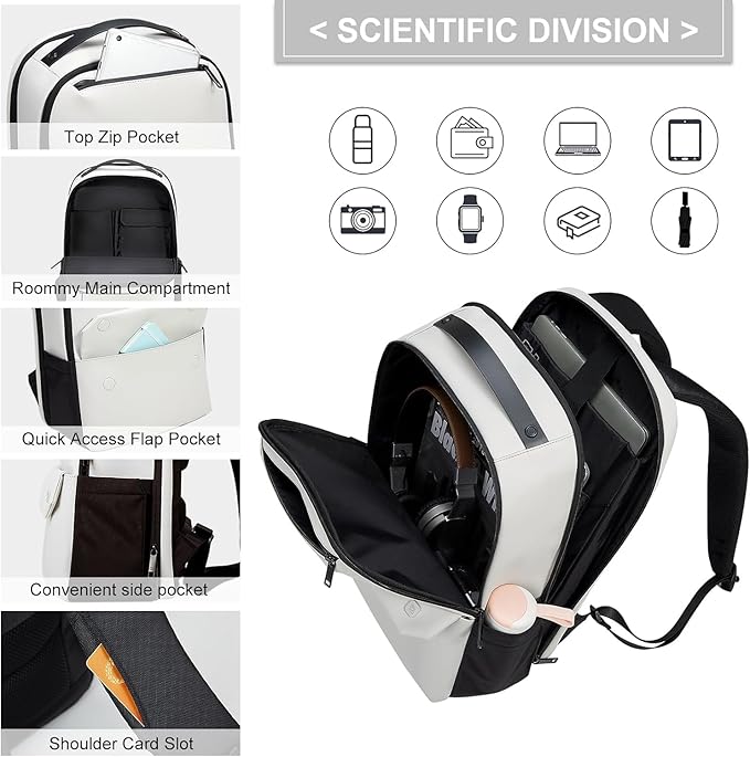 Hanke Carry on Backpack Toiletry Travel Laptop Backpack for Men & Women, Durable Rucksack Weekender Bag Daypack(Salt White)