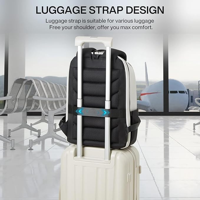 - 【ELASTIC LUGGAGE STRAP】This business backpack come with an elastic luggage strap that allow backpack slide over the luggage tube. It relieves all the strain of carrying a heavy backpack bag while traveling.