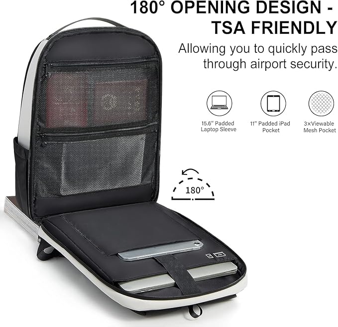 - 【TRAVEL LOCKS FRIENDLY】180° padded computer compartment fits up to 15.6'' laptop, and the travel backpack can be freely unfolded 90-180 degrees, allowing you to quickly pass through airport security and keep things tidy.