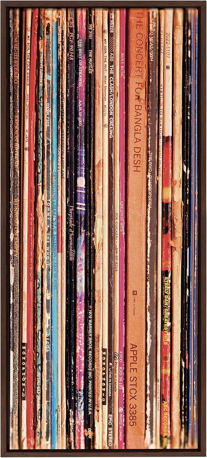 Kate and Laurel Sylvie 33RPM Framed Canvas Wall Art by Robert Cadloff of Bomobob; 18 x 40; Brown; Decorative Music Art for Wall