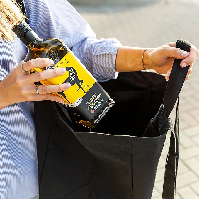 - WINE BAG TO FARMERS MARKET BAG! We don’t need to tell you how practical reusable canvas grocery bags are. But remember, only a VeraMia Canvas Tote for groceries has a dual handle, REAL bottle pockets, holds 80lbs and is one of the biggest you’ve seen! So order this set of 3 canvas bags now from VeraMia.