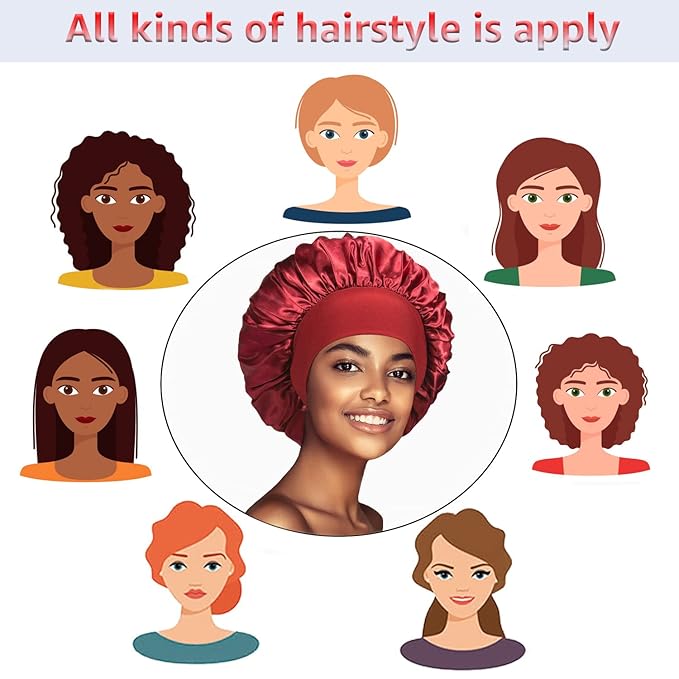 - Silk Bonnet with Elastic Broad Bands: The satin bonnet have a broad elastic band, it can be stretched to fit different head size, which will make your head more comfortable, but won't make your head feel tight.