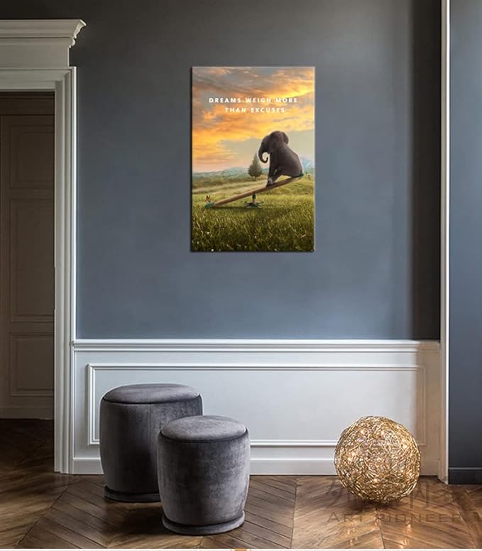 Dreams Weigh More Than Excuses Motivational Canvas Wall Art Inspirational Life Poster Inspiring Quote Picture Home Office Decor Painting Framed and Stretched Ready to Hang [24''W x 36''H]