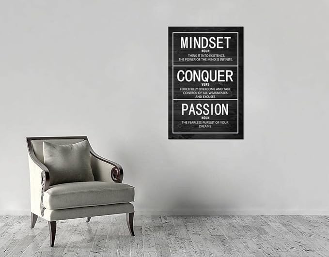Inspirational Poster Passion Mindset Conquer Motivational Canvas Wall Art Paintings Inspiration Artwork Living Room Office Prints Wall Decor Decoration Wooden Framed Ready to Hang [24''Wx 36''H]
