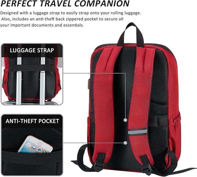 - Great Travel Backpack with Luggage Strap&Hidden Anti Theft Pocket --- A Luggage belt design on the back of the book bag helps to free your hand and back by fixing the laptop bag on the trolley of your luggage, will make your traveling and business trip more convenient. With a Hidden Anti Theft Pocket on the back of backpack protect your valuable items from thieves. Well made for international airplane travel and day trip.