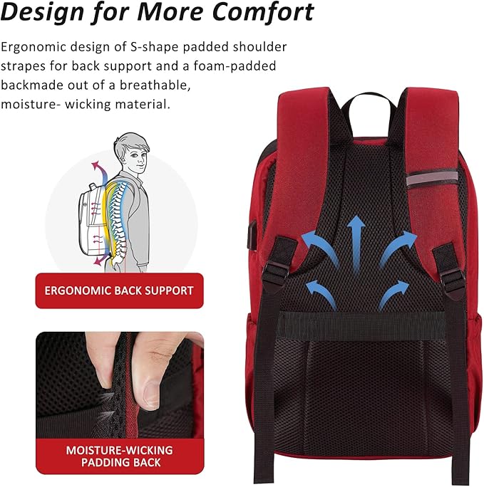 - Comfortable on Your Shoulder and Back with Ergonomic Back Support System --- Comfortable back design with soft padding, gives you maximum back support.Breathable and adjustable ergonomics S-shape padded shoulder straps relieve the stress of shoulder and neck. Even if you pack a lot of things in your backpack, you will not feel a lot of pressure on your shoulders. Very suitable for business travel.