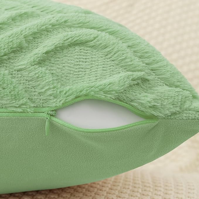 decorUhome Throw Pillow Covers 20x20 Inch Set of 2, Soft Plush Decorative Faux Fur Sage Green Solid Couch Pillow Covers, Accent Farmhouse Neutral Square Euro Pillow Cases for Sofa Bed Living Room