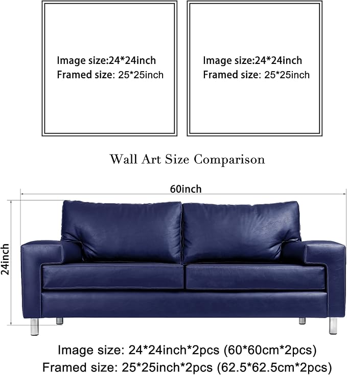 - Art image Size:(W) 24 in x (H) 24 in x 2pcs.Finished Framed Size: (W)24.7 in x (H) 24.7 in x 2pcs,1.3inch/pc thick.