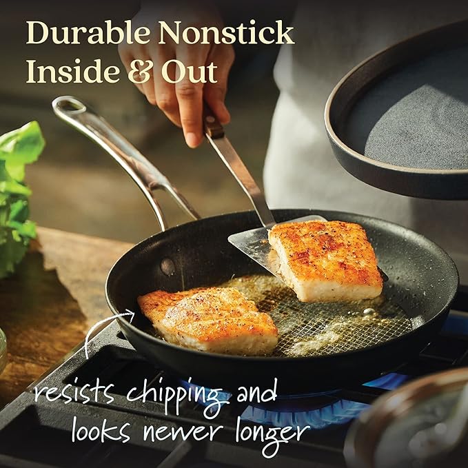 - SEAMLESS SURFACE: Unique, flush rivets and ultra-durable nonstick deliver one of the smoothest, longest lasting cooking surfaces yet -- for recipes that glide off the pan and faster, easier cleanup