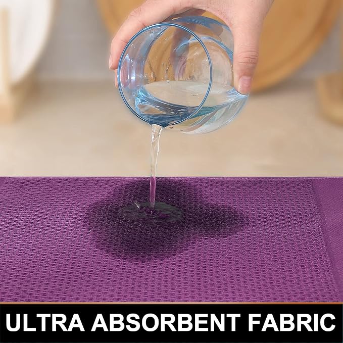 Homaxy 100% Cotton Dish Cloths, 8 Pack - 12 x 12 Inches, Waffle Weave Super Soft and Absorbent Dish Towels Quick Drying Dishcloths, Purple