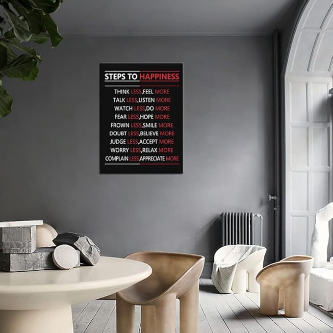 Motivational Wall Art Steps For Happiness Inspirational Positive Poster Inspiring Canvas Painting Prints Wall Pictures for Office Living Room Home Decor Framed Artwork [30''W x 40''H]