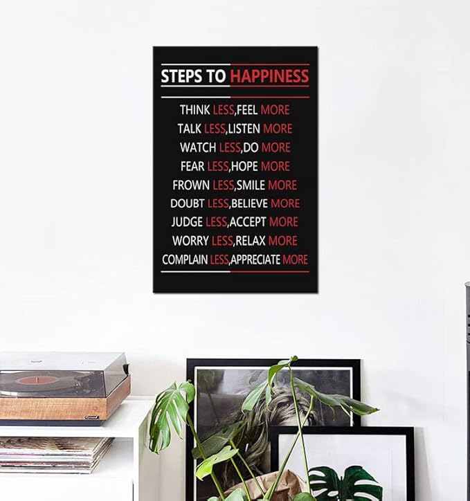 Motivational Steps For Happiness Wall Art for Office Inspiring Positive Poster Inspirational Affirmative Canvas Painting Prints Wall Pictures for Living Room Home Decor Framed Artwork [12''W x 18''H]
