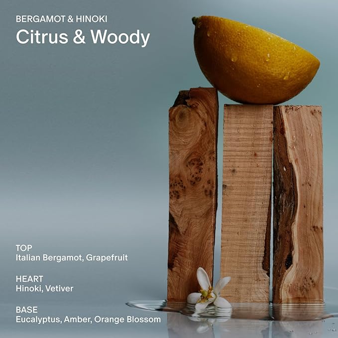 - Iconic Scents — Bergamot & Hinoki is citrus, woody, and sparkling—like a crisp, clear morning.