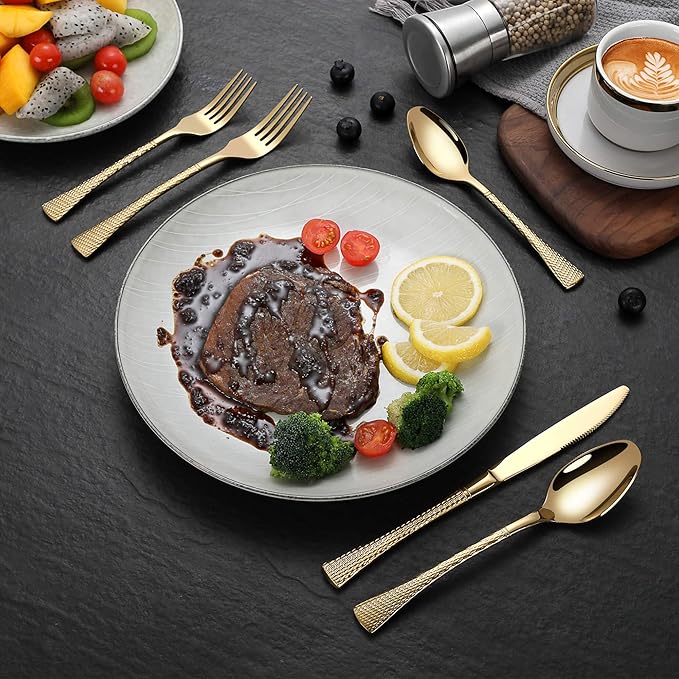 Hammered Gold Silverware Set,20 Piece Modern Flatware Set Service for 4,Mirror Polished Stainless Steel Cutlery Set Utensil Set Tableware Set,Kitchen Knives Forks Spoons Set,Dishwasher Safe